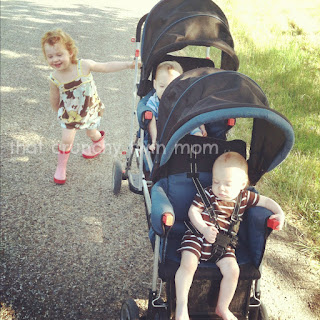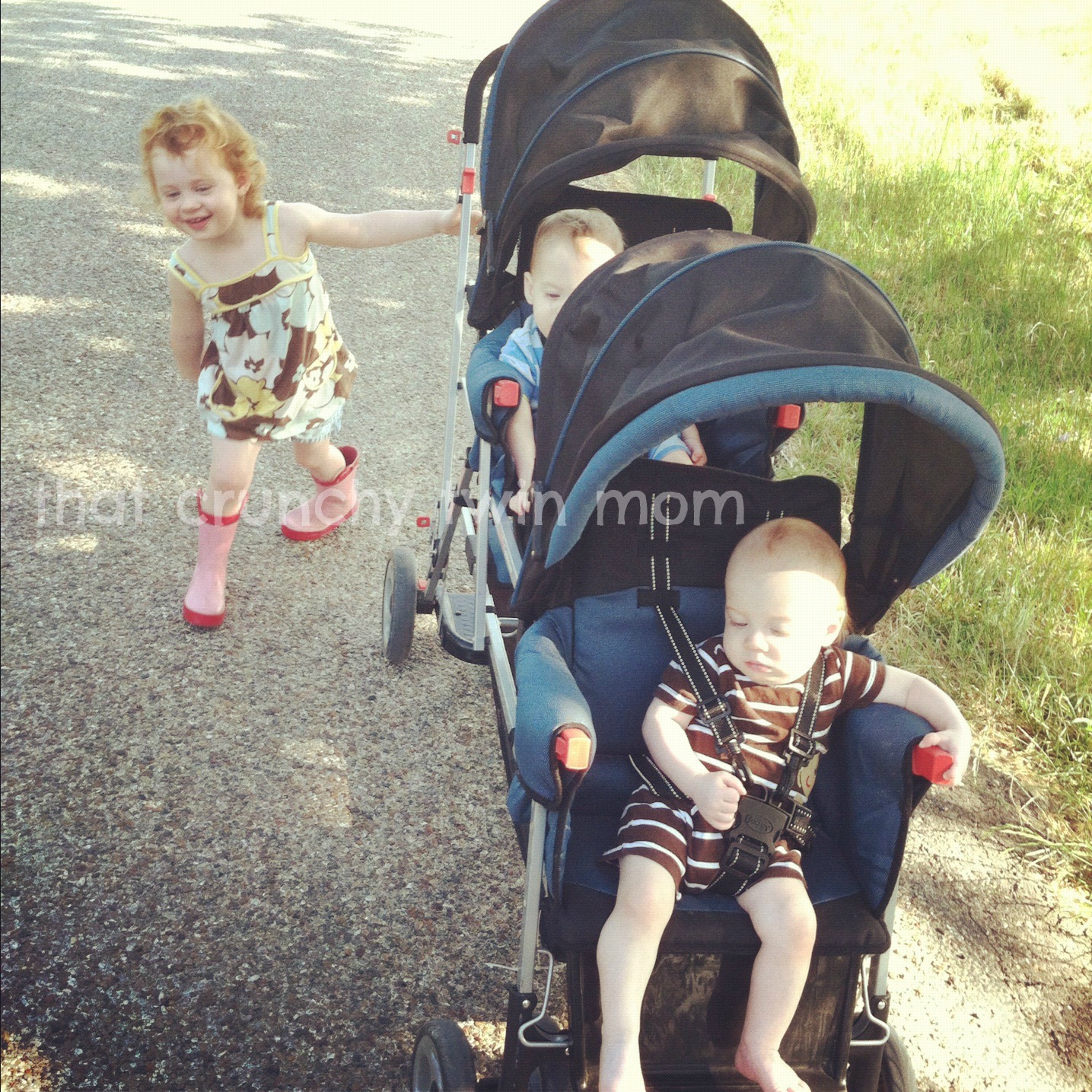 We do love to take walks. I have a Joovy "Big Caboose stand on triple stroller."